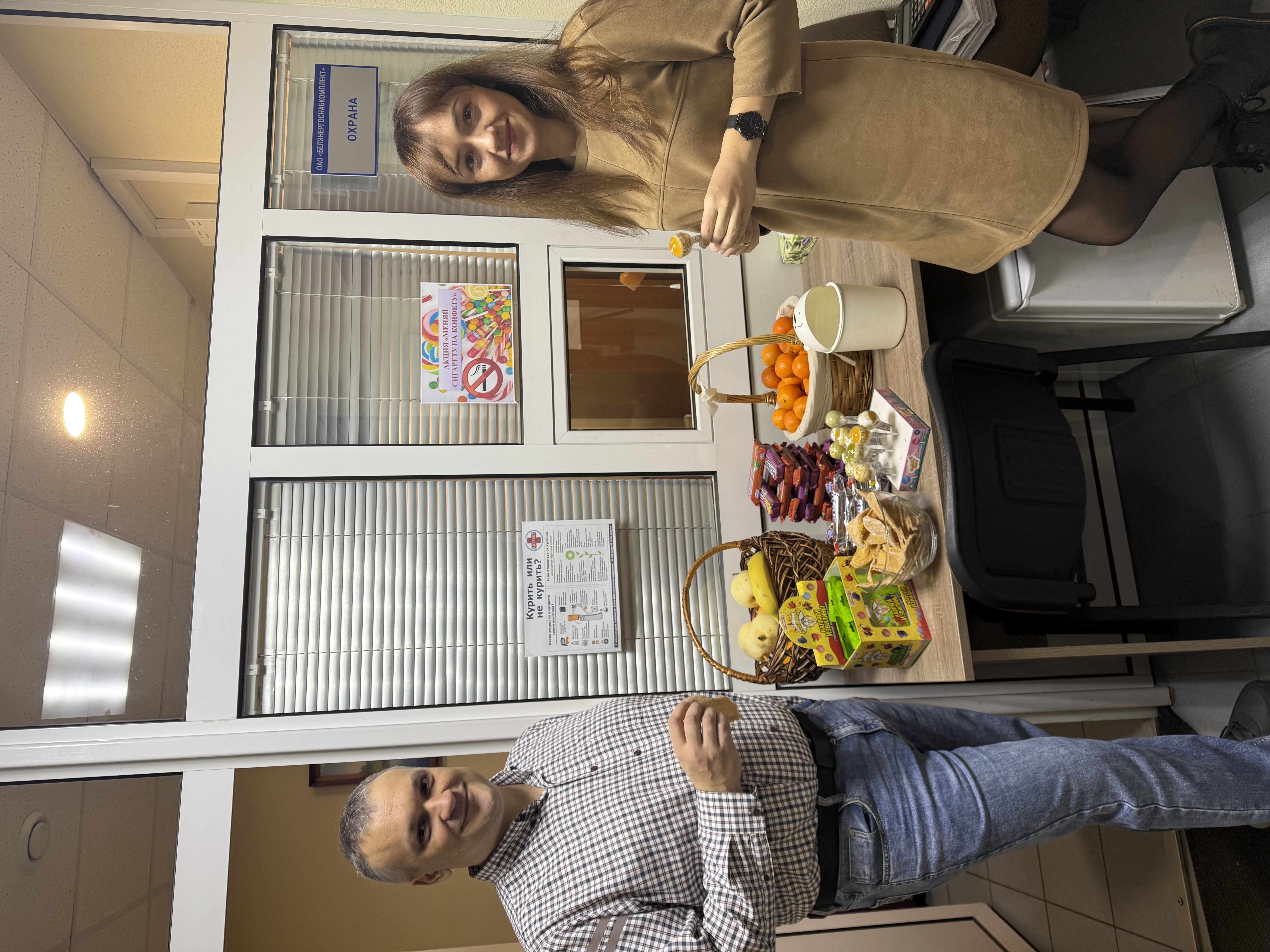 В знак поддержки здорового образа жизни и солидарности с общими целями для некурящих сотрудников Общества было организовано угощение (свежие фрукты).